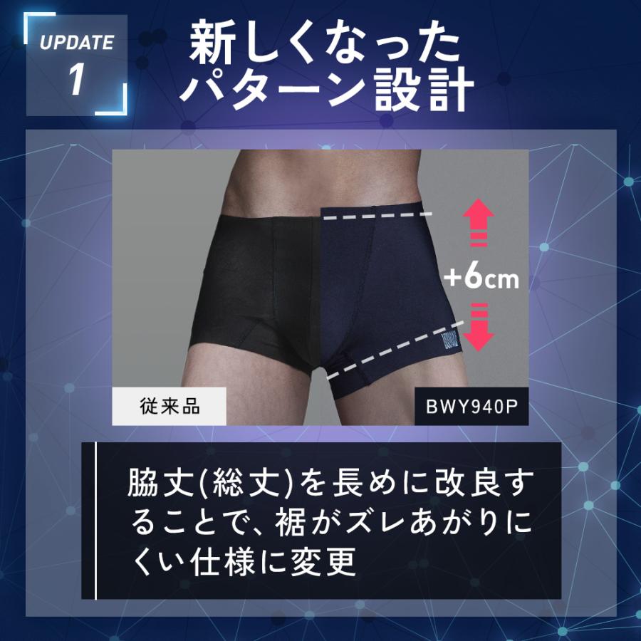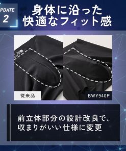 ・従来品より、丈(脇丈)を約6cm(M寸比較)伸ばすことで穿き心地を改良。