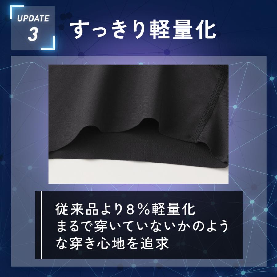 ・生地は横方向の伸縮性と軽量性を向上し、さらにストレスフリーな解放感を実現。