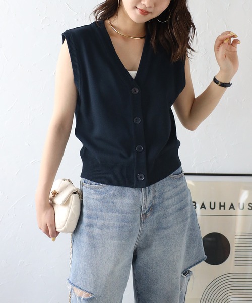参考商品名:Vネックフロントボタンサマーニットベスト