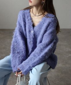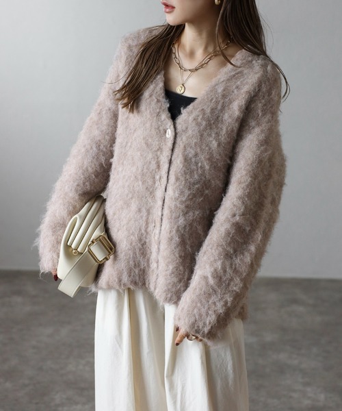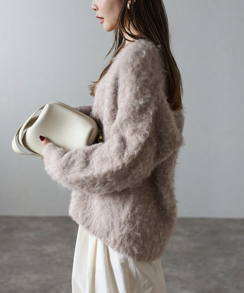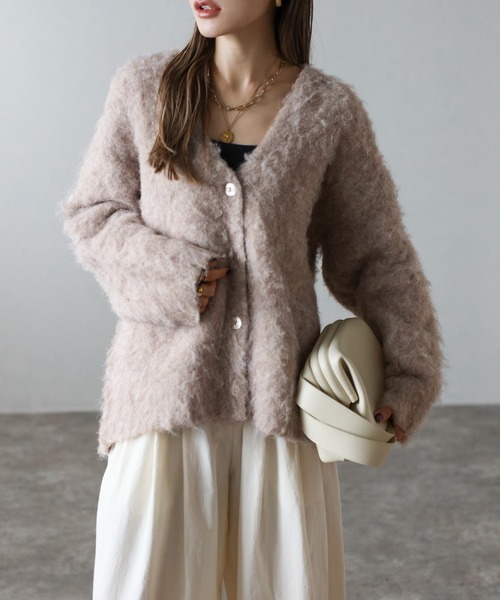 Bonjour Sagan カーディガン アルパカタッチVネックカーディガン レディース