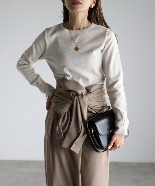 Bonjour Sagan ニット セーター ゴールド釦プレーンニット レディース