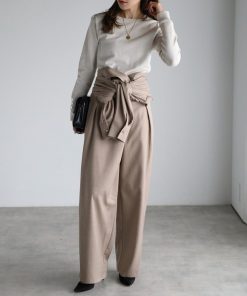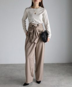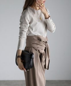 キーワード:ニット セーター レディース クルーネック ロング丈 長袖 無地 キレイめ 韓国ファッション 大人カジュアル