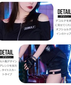 SWAT衣装の定番のベルト付きデザイントップスと、ショートパンツの組み合わせでスタイルアップ。