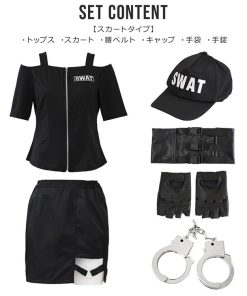 Brightlele ハロウィン コスプレ 大人 SWAT 衣装 仮装 女性 ポリス 警察 警察官 婦警 制服 軍人 スワット スカート パンツ 可愛い コスチューム 大きいサイズ セクシー FKR