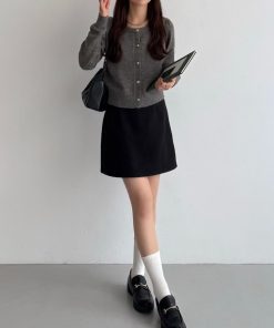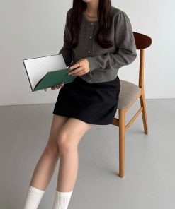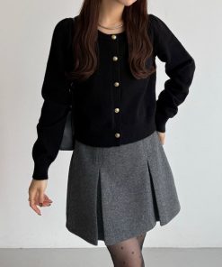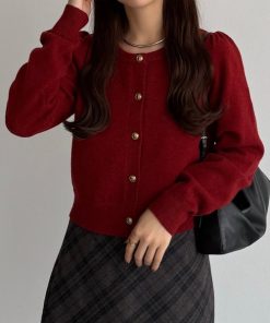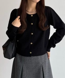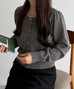 商品名:金ボタンパフスリーブショートニットカーディガン