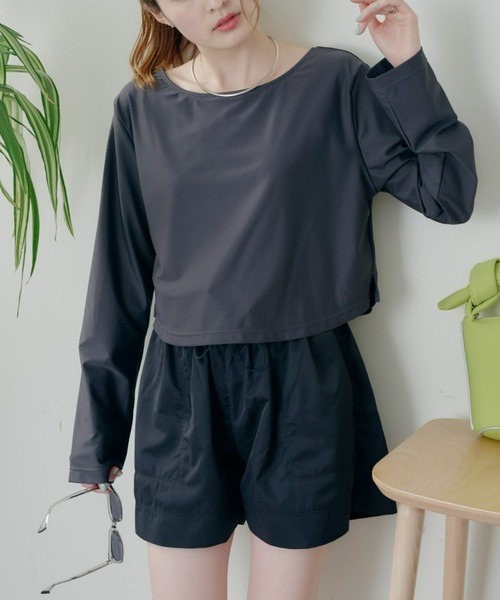 素材:【トップス】表地:ナイロン79% ポリウレタン21%、裏地:ポリエステル95% ポリウレタン5% 【ショートパンツ】ナイロン100% 【インナーショーツ】表地:ナイロン83% ポリウレタン17%、裏地:ポリエステル95% ポリウレタン5%