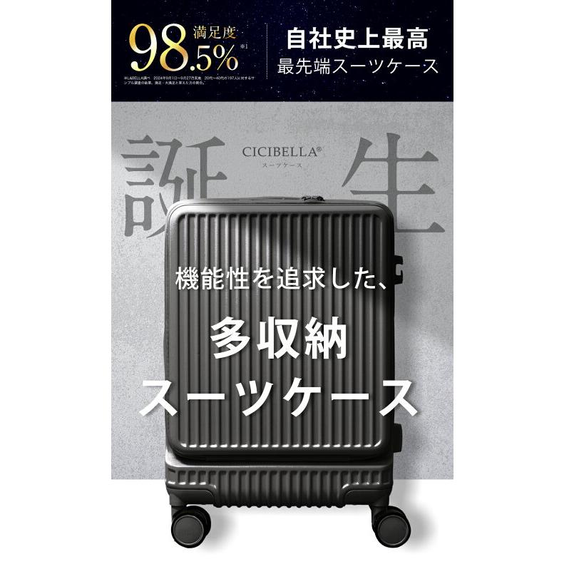 cicibella スーツケース 機内持ち込み キャリーケース シシベラ USBポート付き Sサイズ Mサイズ キャリーバッグ フロントオープン 1-3日用 4-7日用