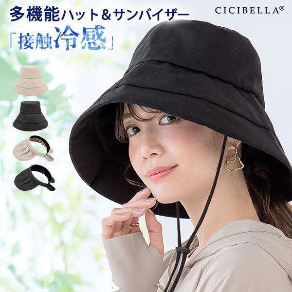 CICIBELLA 帽子 レディース UVカット 接触冷感 つば広帽子 大きめ 日よけ 熱中症 完全遮光 遮光 日焼け防止 折りたたみ 春夏 あご紐付き 紫外線カット 小顔効果