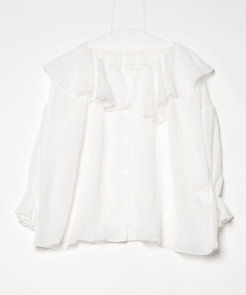 参考商品名:大人なシアー魅せ。2wayラッフルフリルビッグカラーブラウス