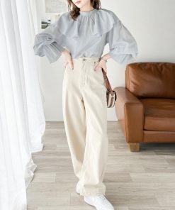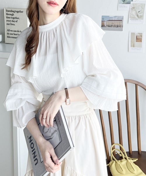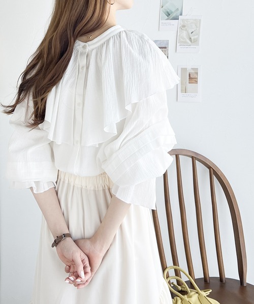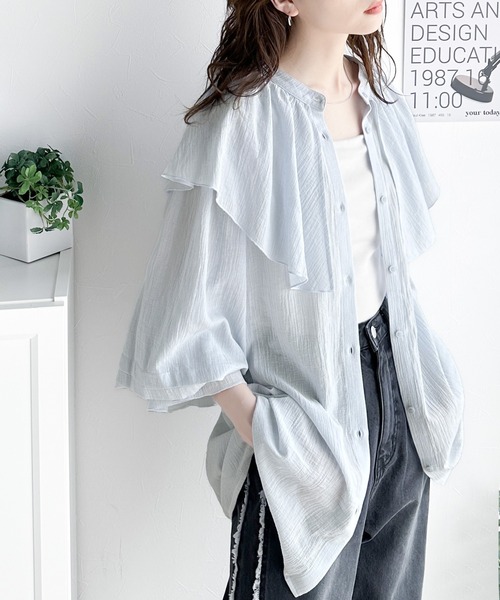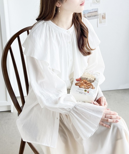 参考商品名:エアリーを纏う。オーガニックコットン混 綿100%前後2wayシアー楊柳シャツブラウス