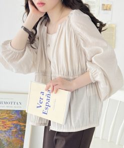 参考商品名:ブラウス見えする前後2wayラグランギャザージップブルゾン