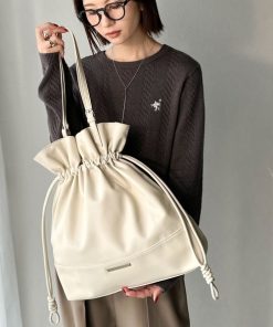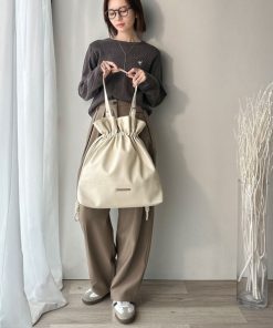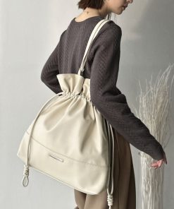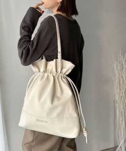 商品名:【classicalelf】きゅっと絞って可愛さ◎フェイクレザービッグトートバッグ