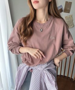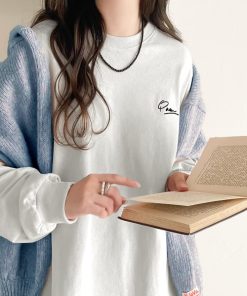 商品名:シンプルカジュアルを格上げ。綿100%ワンポイント胸刺繍シンプル オーバーサイズ ロンTee