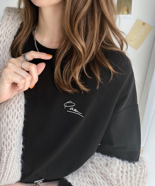 キーワード:tシャツ レディース クルーネック ワンポイント 刺繍 長袖 無地 WEB限定 ウォーキング ストリート スポーティー ピクニック レジャー 公園 秋 春 大人カジュアル 定番