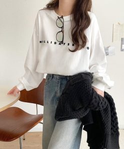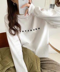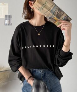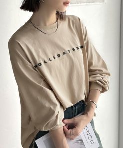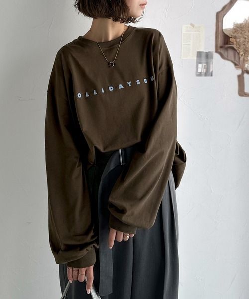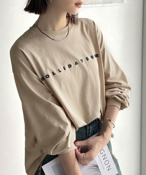 商品名:大人の上品カジュアルを楽しむ。ゆったりシルエット 綿100%シルケット風シンプル英字ロゴTシャツ(長袖)