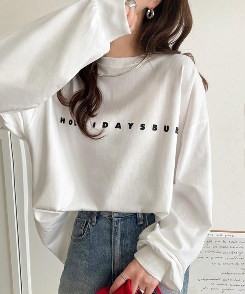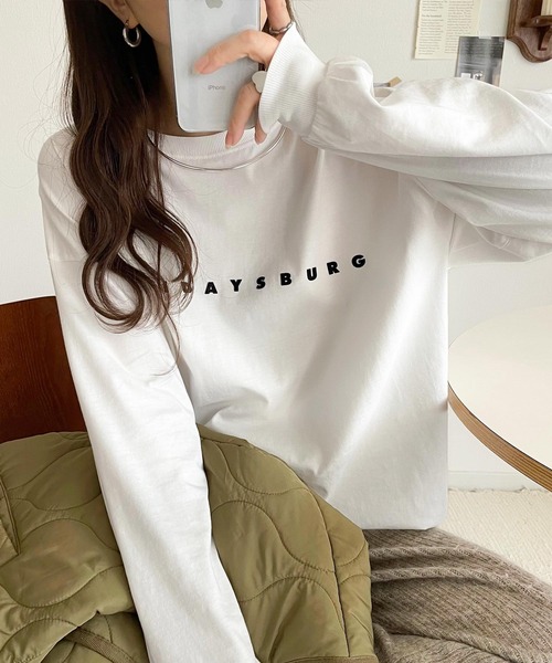 キーワード:tシャツ レディース クルーネック プリント ワンポイント 長袖 無地 WEB限定 ストリート ドライブ ピクニック レジャー ベーシック 秋 大人カジュアル 定番