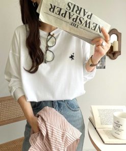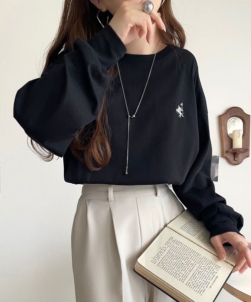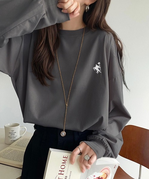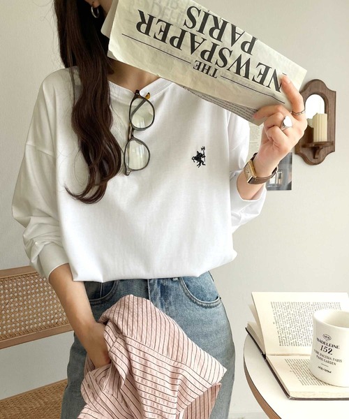 キーワード:tシャツ レディース クルーネック ワンポイント 刺繍 長袖 無地 WEB限定 ドライブ ナチュラル ピクニック レジャー ベーシック 秋 大人カジュアル 定番