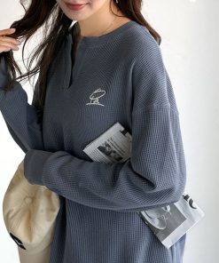 商品名:洒落感アップのこなれT。胸刺繍ワッフルオーバーサイズキーネックロンT(長袖)