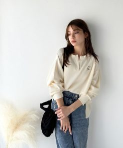 キーワード:tシャツ レディース ヘンリーネック ワンポイント 刺繍 長袖 無地 WEB限定 ナチュラル ノームコア ピクニック レジャー ベーシック 公園 秋 定番
