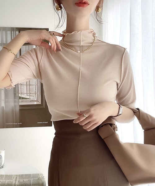 キーワード:tシャツ レディース タートルネック 七分袖 五分袖 無地