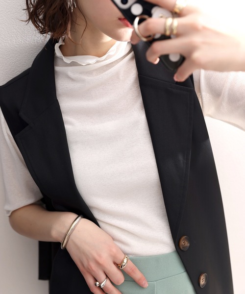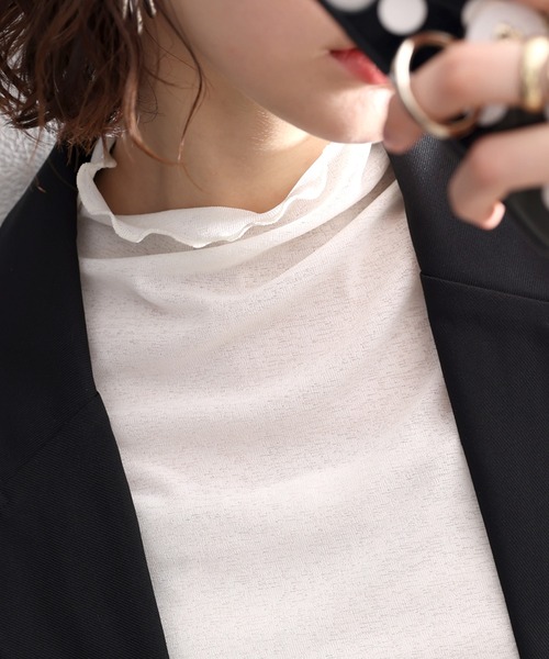 商品名:続・シアーアイテム。2wayメロウシアー素材5分袖トップス