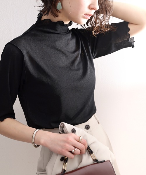 classicalelf tシャツ 続・シアーアイテム。2wayメロウシアー素材5分袖トップス レディース