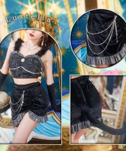 中央の大粒ラインストーンやスカートに付属するチェーンがキラキラで自撮りも映えます。