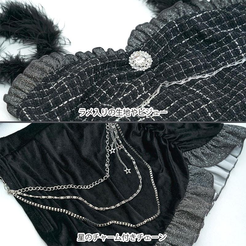 中央の大粒ラインストーンやスカートに付属するチェーンがキラキラで自撮りも映えます。