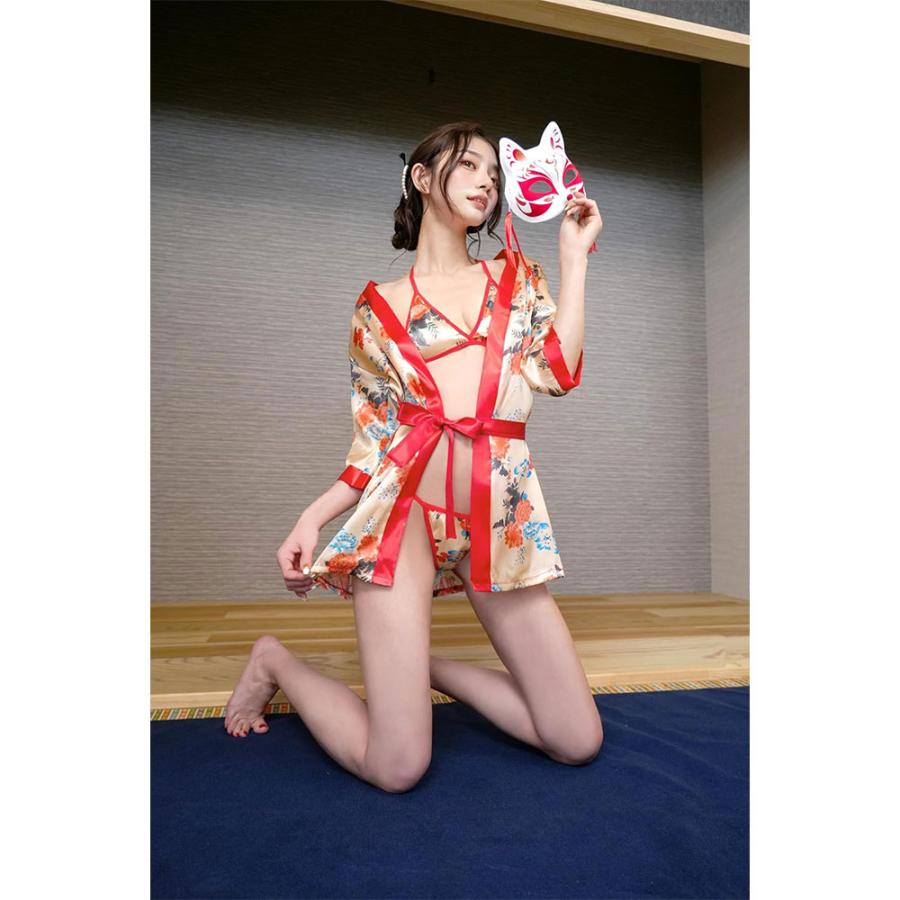 着物とお揃いのブラとショーツを覗かせて思い切りセクシーに。