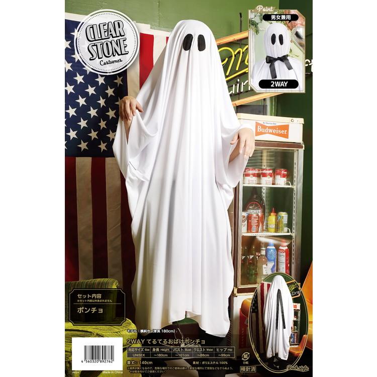 clearstone ゴースト 幽霊 お化け おばけ ユニセックス 男女兼用 衣装 仮装 コスプレ コスチューム 2WAY てるてる おばけ ポンチョ
