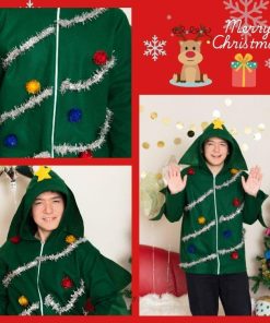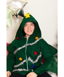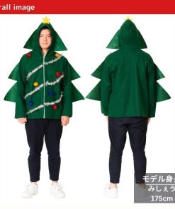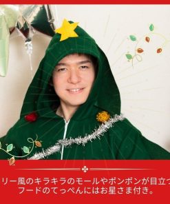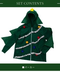 簡易仮装で、気軽に着用できるパーカータイプのコスチューム。ツリー風のキラキラのモールやポンポンが目立ちます!フードのてっぺんにはお星さま付き。