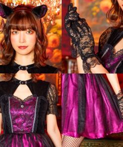 猫耳内側、袖、胸元、グローブには、ブラックレース生地を多用しています。