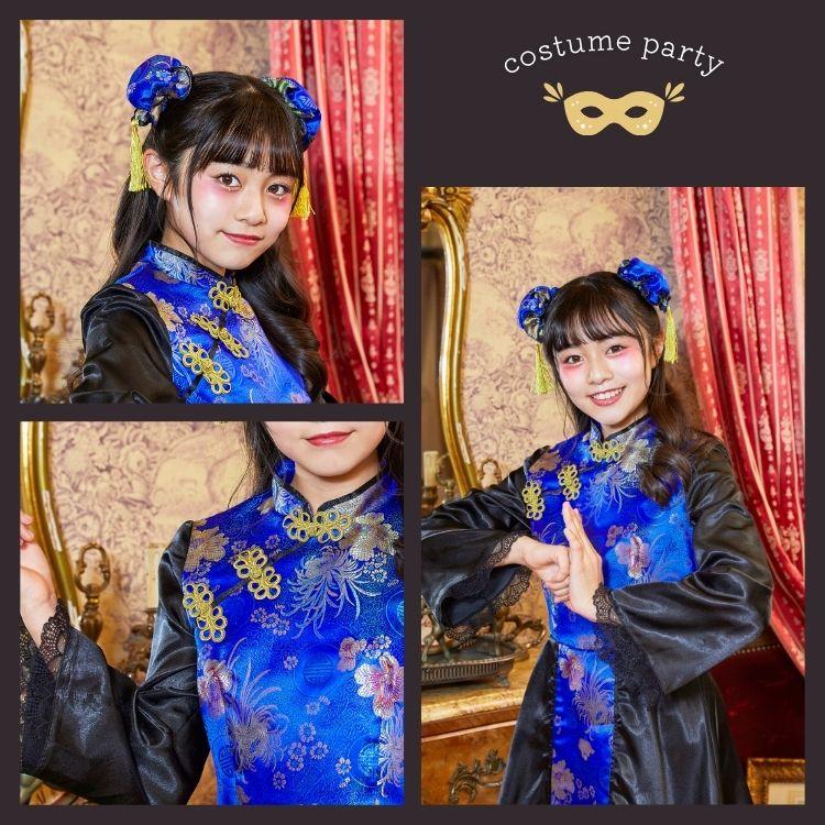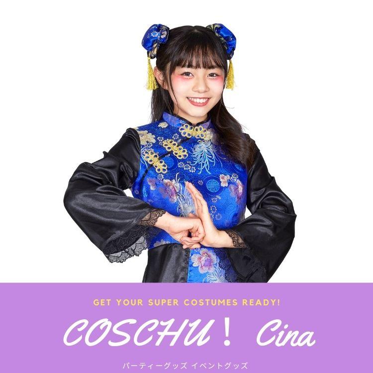 ジュニア向けコスチュームブランド「COSCHU!」。可愛いけど子供っぽすぎない、お洒落もメイクも興味深々な女の子の気分にフィットするコスチュームシリーズ。お団子カバーがキュートなチャイナコスチューム。ブルー×ブラックで思いっきり目立っちゃおう!ワンピースは後ろファスナーです。長袖なので、腕を出したくない人にもオススメ。