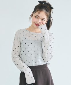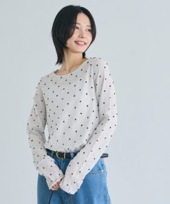 キーワード:tシャツ レディース クルーネック ドット 長袖 ドライブ ピクニック レジャー プチプラ ベーシック 秋 春 大人カジュアル 旅行