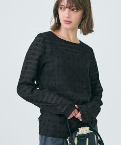 uricca 980円 クーポンで! Tシャツ トップス エンボス レディース 半袖 黒 白春 夏 おしゃれ かわいい 30代 40代 50代 7分袖 5分袖 [郵3]^t995^
