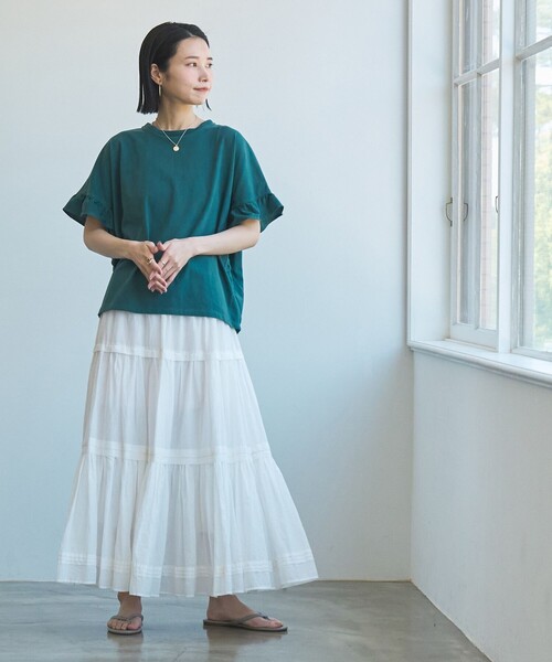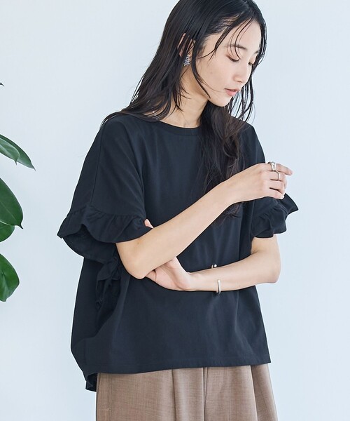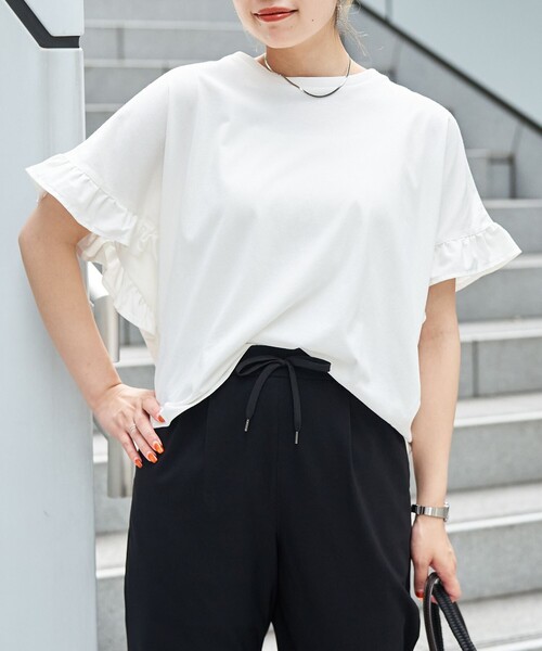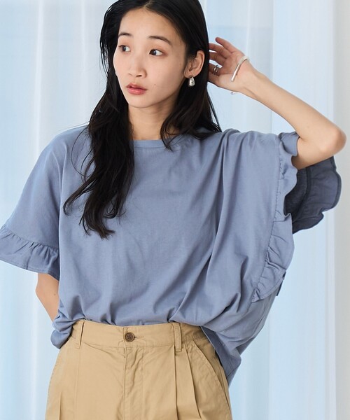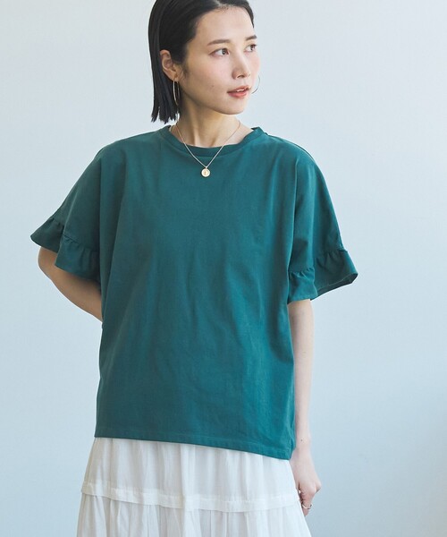 coen tシャツ エマール検証済み「UVカット・接触冷感」WELLTECT USAコットン フリルスリーブプルオーバー レディース