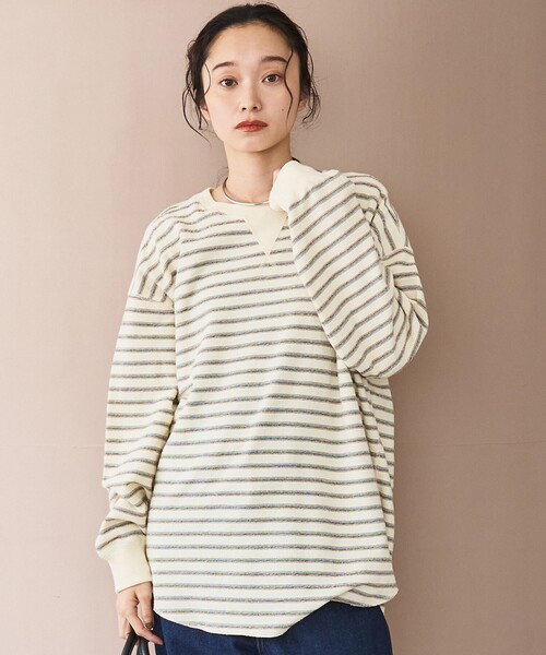 キーワード:tシャツ レディース クルーネック ボーダー 長袖 アウトドア ピクニック レジャー プチプラ ベーシック 公園 秋 大人カジュアル 定番