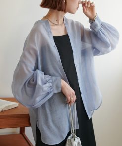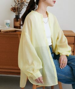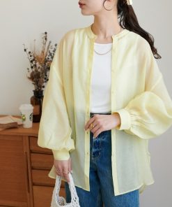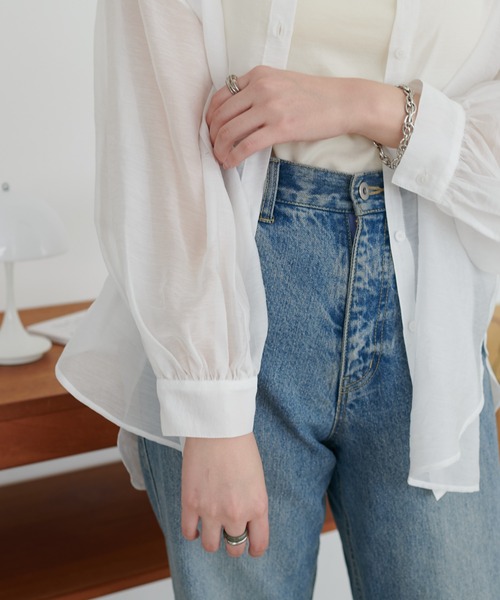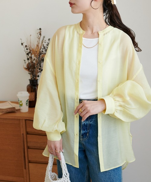 参考商品名:【新色追加!】シアーバンドカラーシャツ