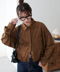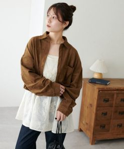 Discoat ブラウス シャツ 「WEB限定」裾ドロストスエードシャツ レディース