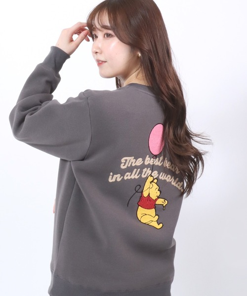 商品名:Disney(ディズニー)サガラ刺繍・ワッペン・キャラクター裏起毛スウェットトレーナー レディース/長袖プルオーバー