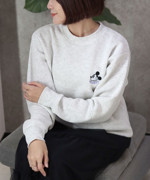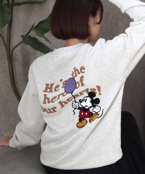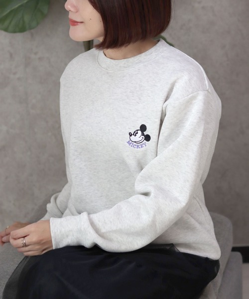 Disney トレーナー スウェット Disney(ディズニー)サガラ刺繍・ワッペン・キャラクター裏起毛スウェットトレーナー レディース/長袖プルオーバー レディー