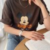 大きなプリントのミニーが可愛いTシャツに、てろんとして柔らかく、楽に過ごせるパンツのセットです。リラックスタイムにオススメ。