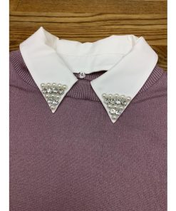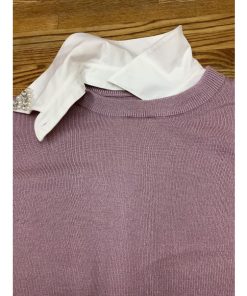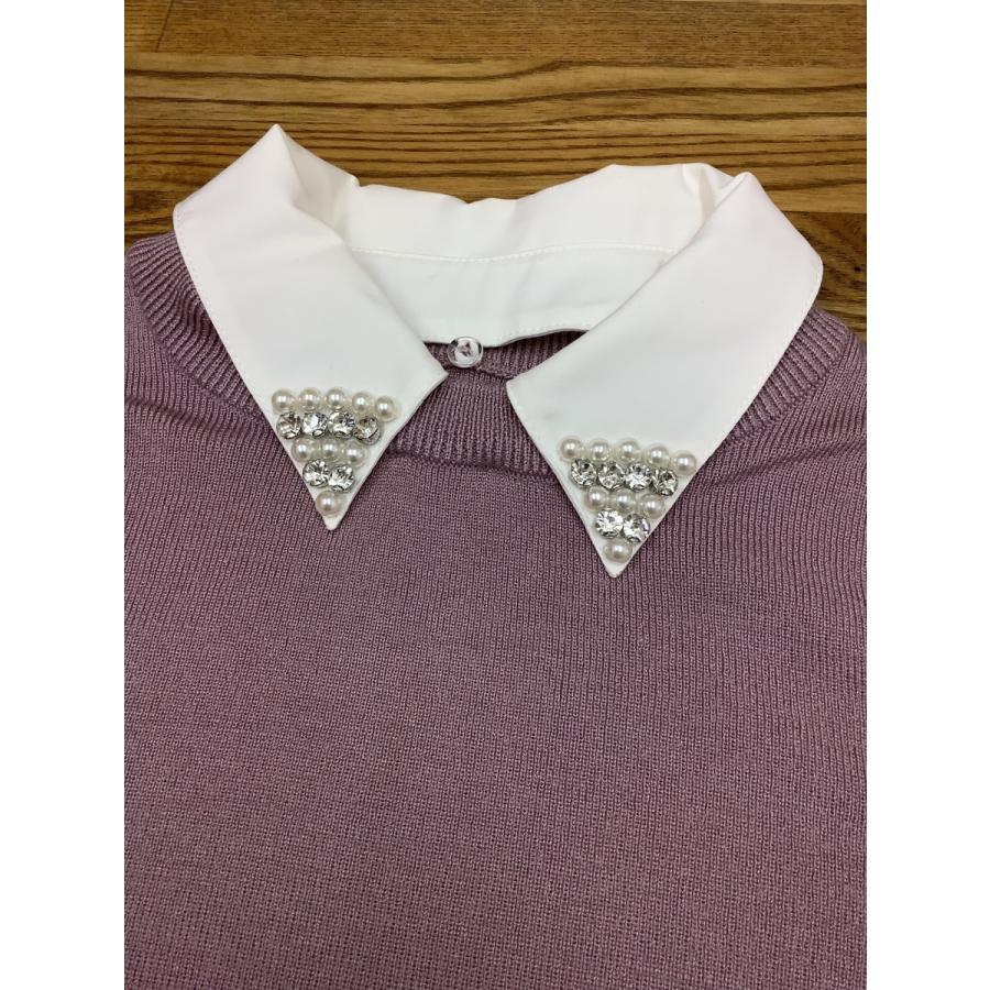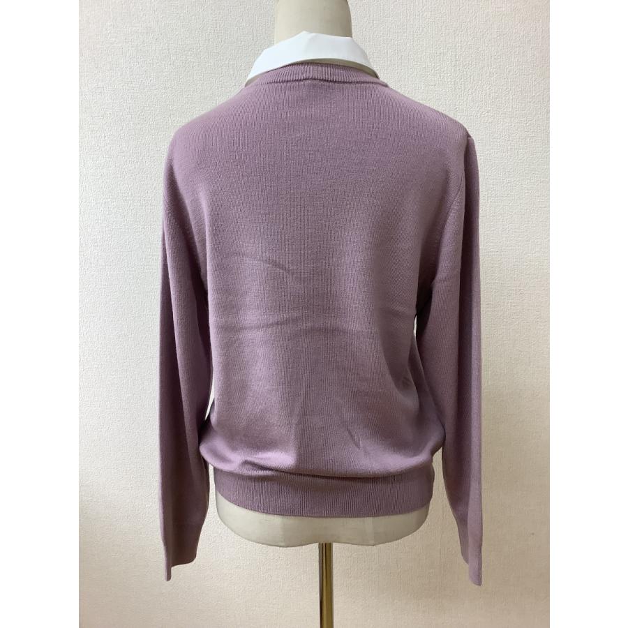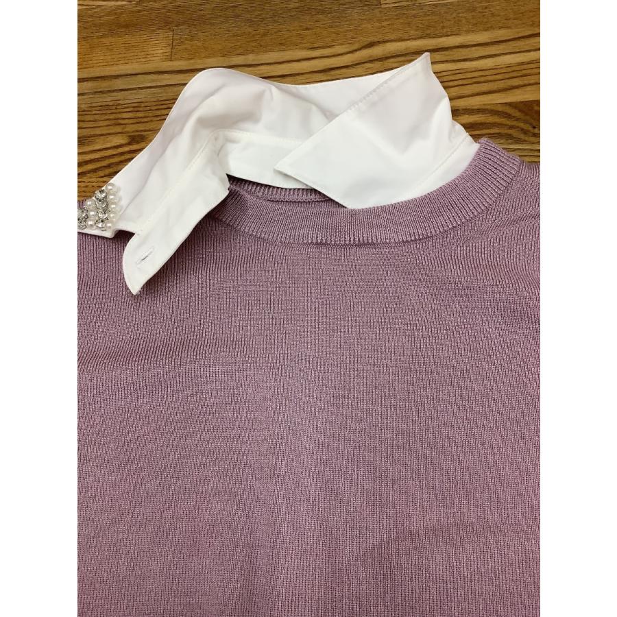 ラベンダー色ニット 着脱式白えり付き 美品 サイズM