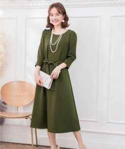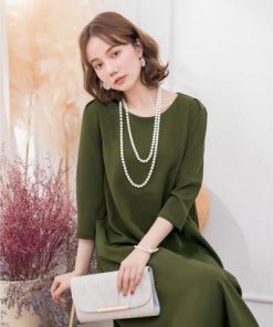 DRESS+ ドレスプラス フレアロング丈結婚式ワンピース (カーキ)