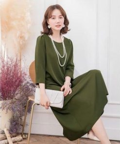 DRESS+ ドレスプラス フレアロング丈結婚式ワンピース (カーキ)
