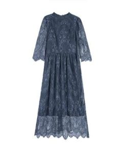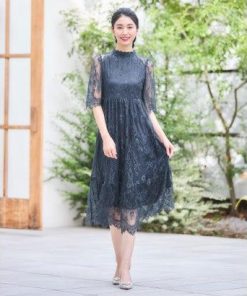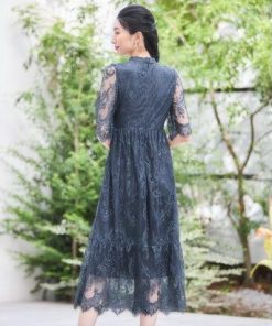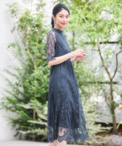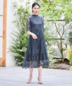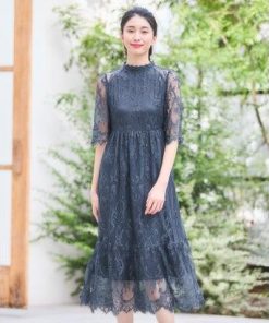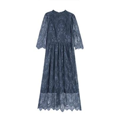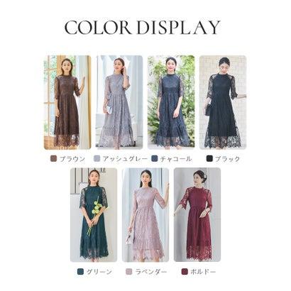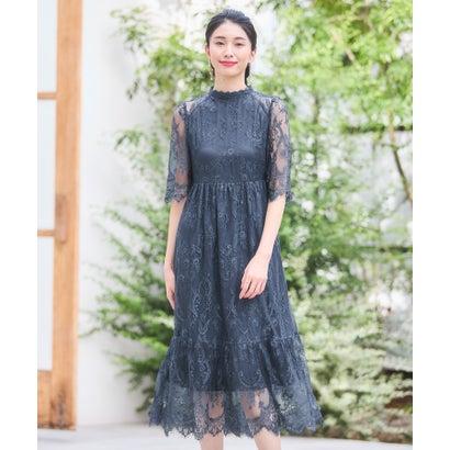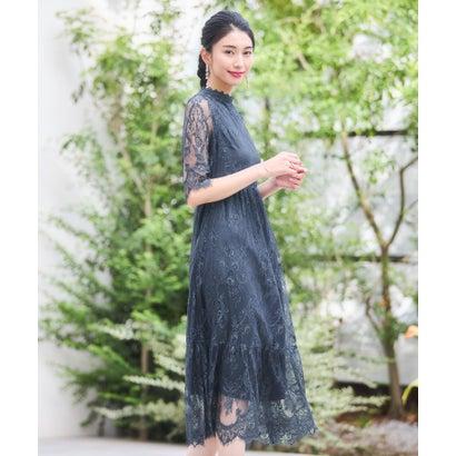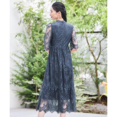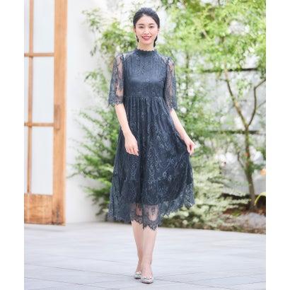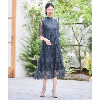 DRESS+ ドレスプラス レーススタンドカラーワンピースドレスパーティードレス (チャコール)