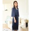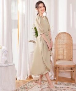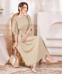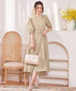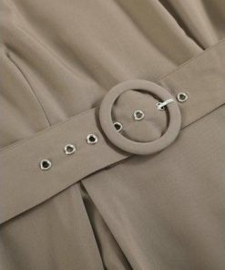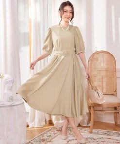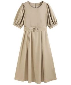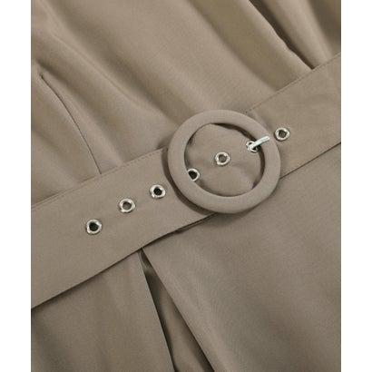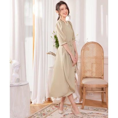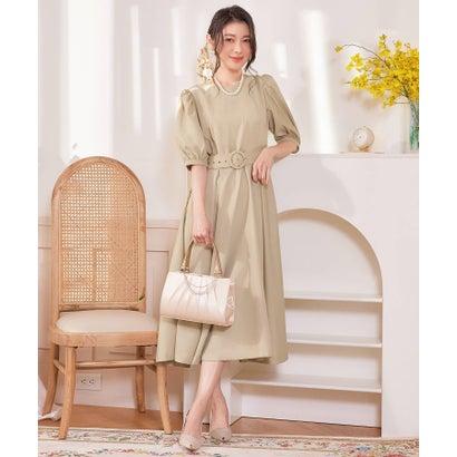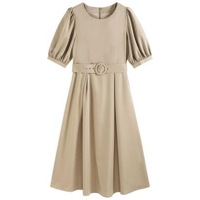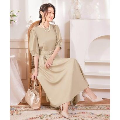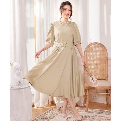 DRESS+ ドレスプラス ワンピース ミモレ丈 結婚式 フォーマル ベルト付き (ベージュ)