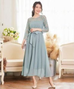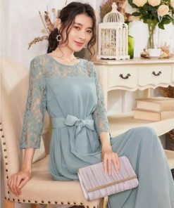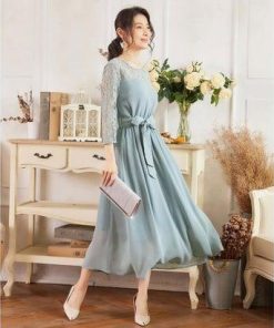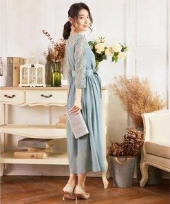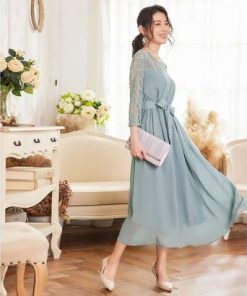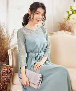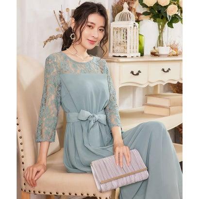 DRESS+ ドレスプラス ワンピース レース 披露宴 結婚式 フォーマル パーティードレス (ブルーグレー)