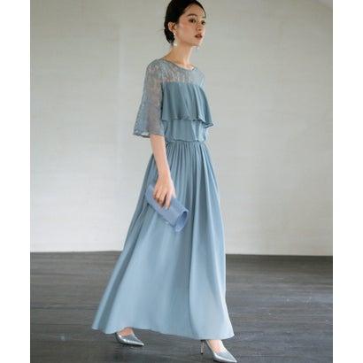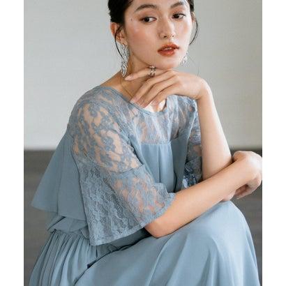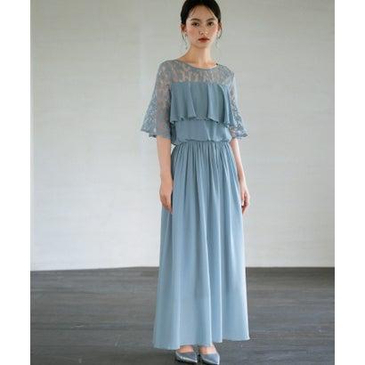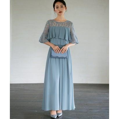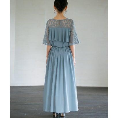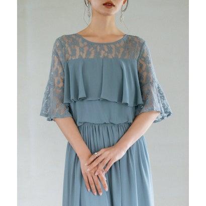 DRESS+ ドレスプラス 胸元フリルのレースドレス・結婚式ワンピース・お呼ばれパーティードレス (ブルーグレー)