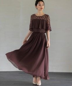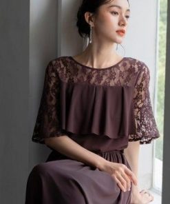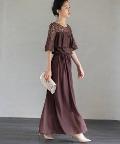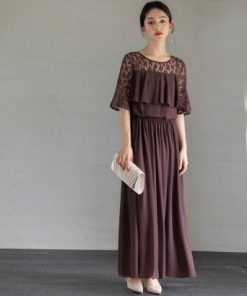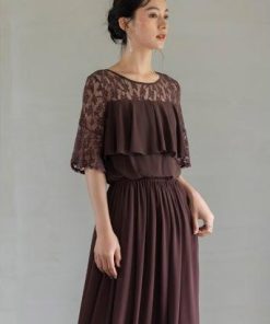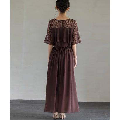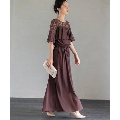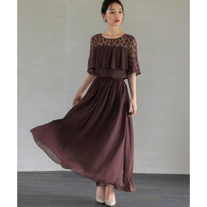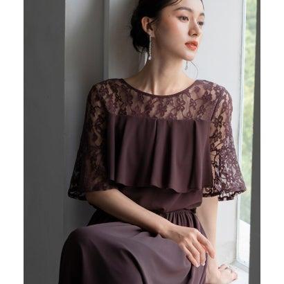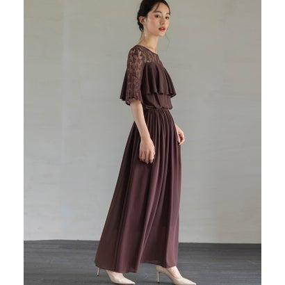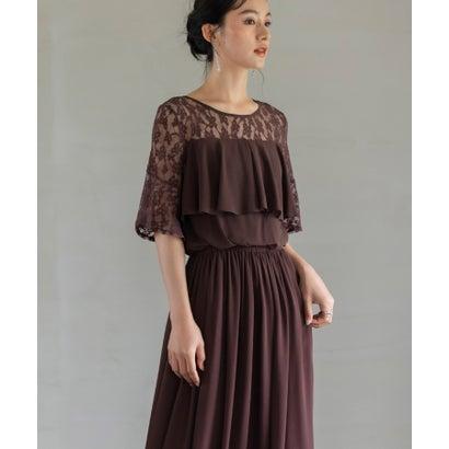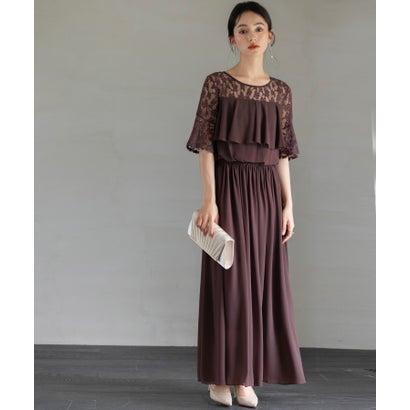 DRESS+ ドレスプラス 胸元フリルのレースドレス・結婚式ワンピース・お呼ばれパーティードレス (チョコ)